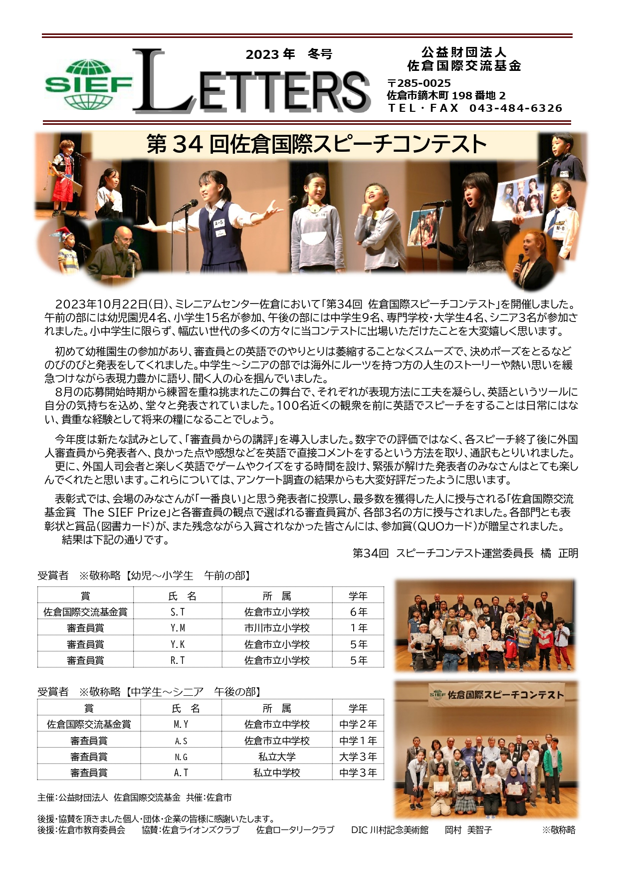 SIEF Letters2023年冬号より コンテストの報告と出場者のコメントをご紹介
