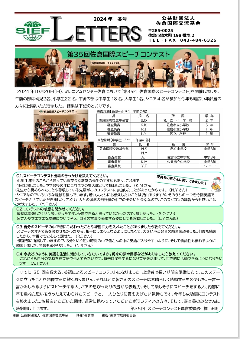 SIEF Letters2024年冬号より コンテストの報告と出場者のコメントをご紹介